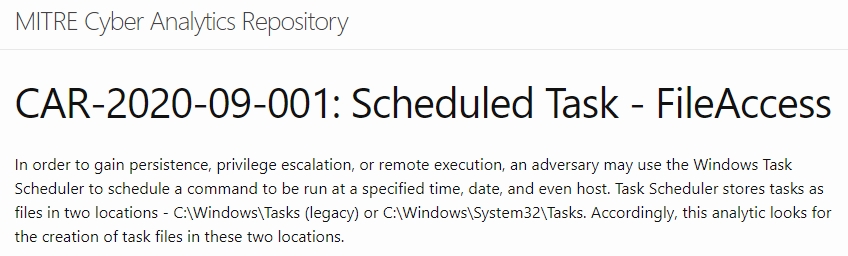Let's begin our journey by reviewing CAR-2020-09-001: Scheduled Task - File Access.