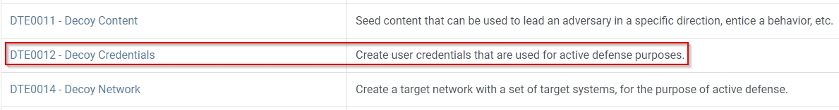 Click on DTE0012 - Decoy Credentials.